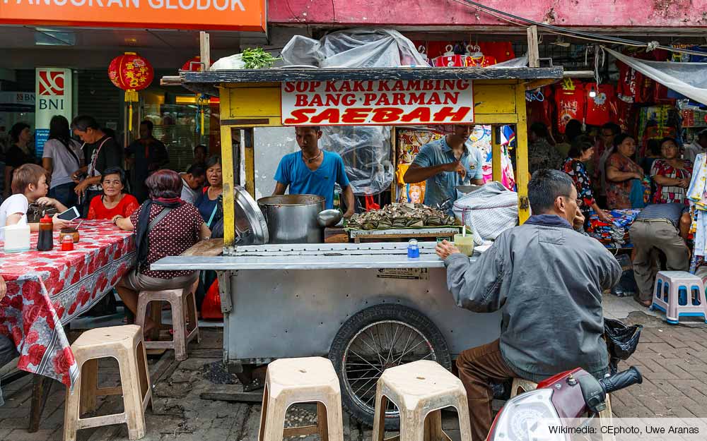 En vergeet de kaki lima's (eetkar) niet! Voor een knorrende maag tijdens je rondreis door Indonesië is er geen plek, want voor een tiental eurocenten koop je op ieder moment van de dag, op iedere hoek van de straat, een smakelijk gerecht.