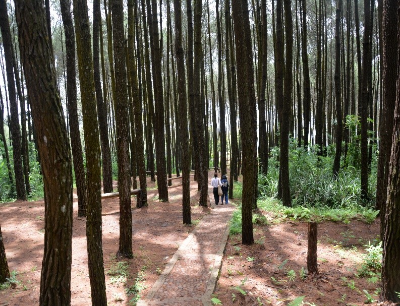 We hebben op Jogjakarta Websites nieuwe interessante plekken ontdekt. Een daarvan is ‘Pinus Asri’, een 600 meter hoog gelegen pijnbomen bos bij Imogiri. Het bos maakt deel uit van een natuurreservaat en is een jaar geleden opengesteld voor bezoekers die kennis kunnen maken met deze geïmporteerde boomsoort die alleen op deze hoogte kan groeien. Met de aanleg van pijnbomenbossen is begonnen in Nederlands-Indische tijd en daarna na de onafhankelijkheid van Indonesië voortgezet. Als de bomen eenmaal volwassen zijn en een hoogte van 30 meter hebben bereikt worden ze selectief gekapt en het hout gebruikt als bouwhout en voor het produceren van lucifers en papier.