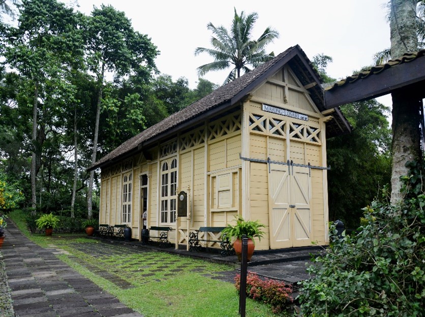 Vanuit Jogjakarta volgen we eerst de drukke weg naar Magelang en slaan na deze plaats rechtsaf. We volgen een smalle weg door een vruchtbaar heuvelachtig gebied en komen tegen 12 uur in Mesa Stila aan. Mesa Stila of de Losari Koffie plantage zoals deze in Nederlands-Indische tijd heette kent een lange geschiedenis, die begint in 1873. De plantage kwam na de onafhankelijkheid in handen van de Indonesische overheid en werd later opgekocht door Gabriella Teggia, een Italiaanse vrouw die zich in 1965 in Indonesië vestigde. Zij kocht de koffie plantage en maakte van de helft van de 22 hectares een Resort met 25 luxe bungalows. Door het gebied waar de plantage zich bevindt reed lange tijd de Mayong-Losari trein. Het had een eigen station dat Mayong-Losari 905 M heette. In de zeventiger jaren raakte deze treinverbinding in onbruik en in 2001 werd besloten het station te slopen en het teakhout waarvan het was gemaakt te verkopen. Vlak voordat begonnen zou worden met de sloop kreeg Teggia daar over te horen. Ze besloot het station in zijn geheel te kopen, liet het zorgvuldig uit elkaar halen, huurde 40 vrachtwagens en liet het binnen haar Resort opnieuw opbouwen.