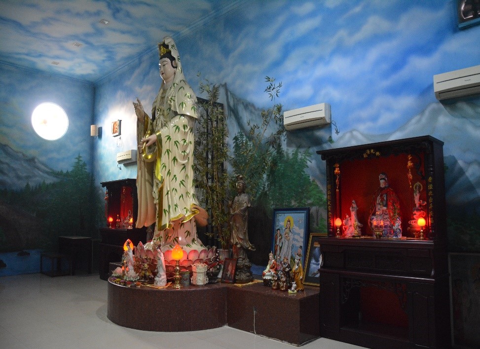 Niet ver van het Hotel bevindt zich een oude Chinese Tempel, de Tjoe Tik Kiong. Samira en ik brengen een kort bezoek aan deze tempel. Een al op leeftijd zijnde koster ontvangt ons vriendelijk. Hij vraagt waar we vandaag komen en leidt ons door de verschillende vertrekken rond. Elk vertrek is anders ingericht en heeft ook een andere functie. Ze lijken veel op de Chinese tempels die we eerder dit jaar tijdens de start van het Chinese Nieuwjaar, het Jaar van het Varken, in Jakarta hebben bezocht. In de achterste tempelruimte staat een zes meter hoog beeld van een godin die we tijdens ons bezoek aan Singapore hebben leren kennen. Ze heet Kwam Im en is een belangrijke godin voor zeelui en migranten. Daar ligt ook de oorsprong van de Tjoe Tik Kiong Tempel die voor pas uit China op Java aangekomen Chinese migranten een belangrijke plaats van samenkomst was. Het verhaal gaat dat de oorsprong van Kwam Im in India ligt in de tijd dat Boeddha leefde. Kwam Im was aanvankelijk een Hij, maar werd later een Zij. Volgens de huidige Dalai Lama zou hij een reïncarnatie van Kwam Im zijn. Een van de redenen dat Kwam Im veel aanzien geniet is omdat ze twintig levensgeboden heeft ingesteld. Zo luidt het twintigste gebod: ‘Als je bidt zal je gebed zeker verhoord worden. Heb daarbij echter geduld en volg het juiste pad.’