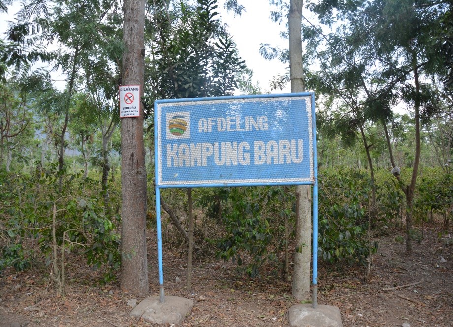 De weg naar boven is inderdaad flink opgeknapt. Terwijl we naar boven rijden zien we hoe vruchtbaar de grond in Java nabij vulkanen is. We zien velden waar de kool net is geoogst. Er zijn kleine plantages met bananen en andere fruitsoorten. Nadat we een half uur naar boven zijn geklommen komt er een korte afdaling die naar een koffieplantage voert. De plantage is nog uit Nederlands-Indische tijd. Langs de kant van de weg zien we borden met namen van delen van de plantage uit die tijd zoals ‘Afdeling Malang’ en ‘Etablissement’.
