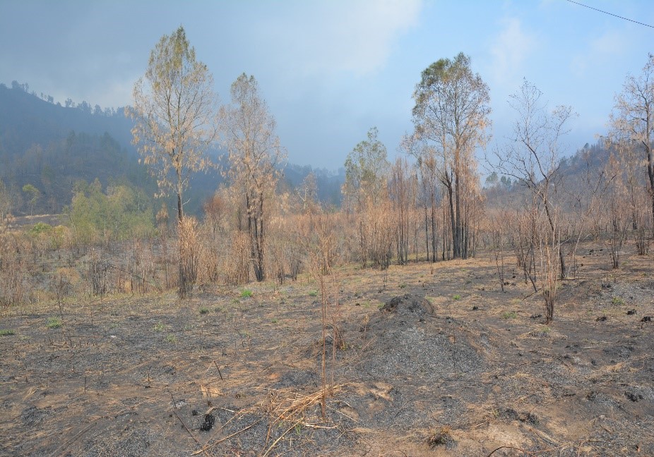 We rijden verder en komen in een gebied waar recent bosbranden hebben gewoed. Van de bomen die er ooit stonden zijn alleen stompjes over. Bomen die over de weg zijn gevallen en de weg hebben versperd zijn weggehaald. Hoe is deze bosbrand ontstaan? Spontaan vanwege de droogte en hitte van de laatste maanden? Een brandende sigaret die iemand vanuit zijn auto naar buiten heeft gegooid? Hete nog brandende as van de Ijen Vulkaan? We komen er niet achter. Aangekomen bij het Paltuding plateau van waar de klimtocht naar de kraterrand normaal wordt ondernomen zien we veel militairen. Bussen en auto’s met bezoekers zien we niet. Wel een mini-brandauto. Bij het informatiekantoor is niemand. We zien dat de toegangsgelden sinds onze laatste bezoek flink zijn verhoogd. Buitenlanders betalen nu 14 Euro en wie een filmcamera meeneemt betaalt nog eens 60 Euro extra. Twee soldaten die met mij op de foto willen vertellen dat de toegang tot de Ijen krater gesloten is. Het bosbrandgevaar bestaat nog steeds.