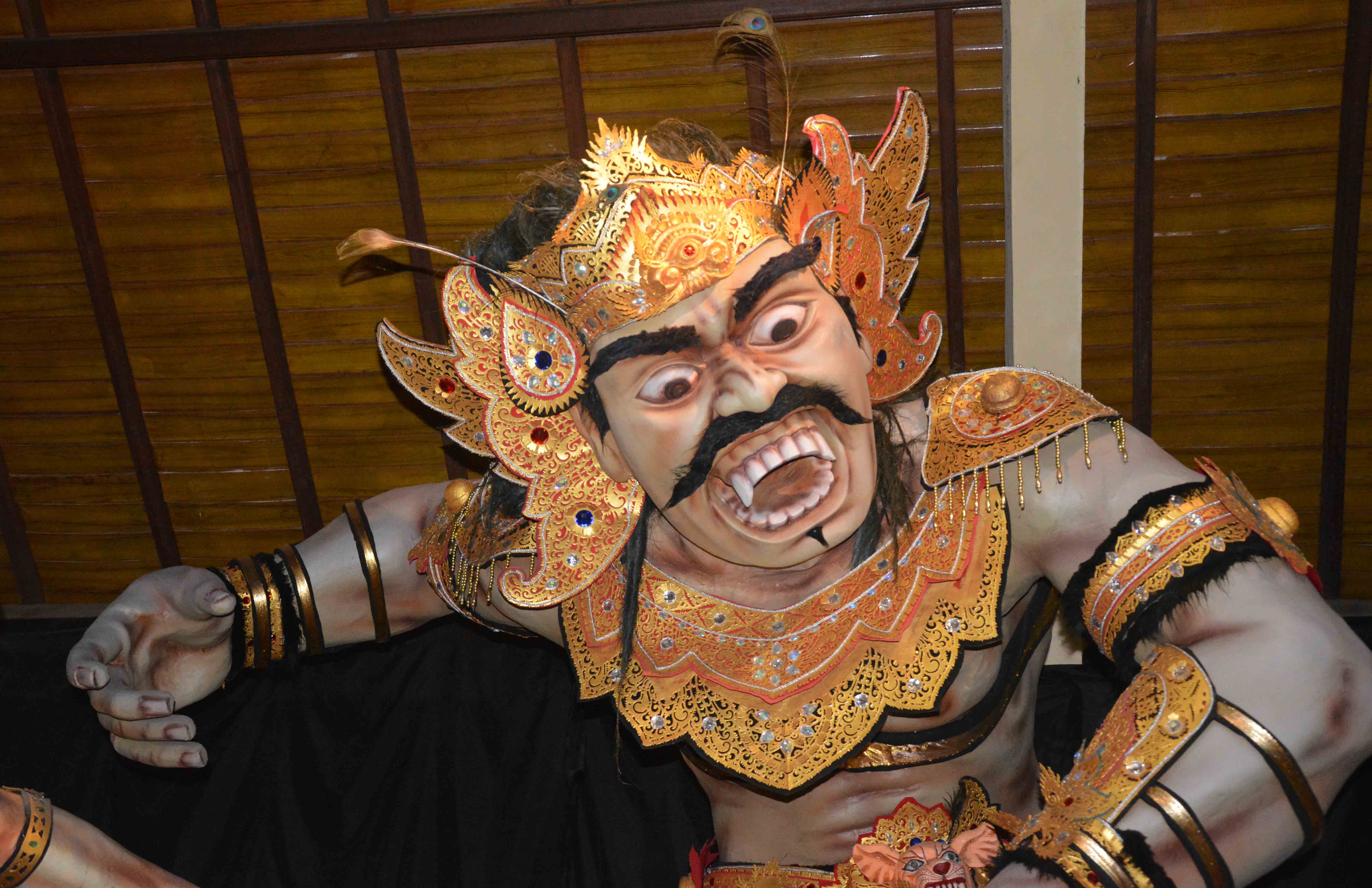 Als we het ‘Ogoh-Ogoh’ Museum binnenstappen zien we direct dat de opgestelde poppen hier van een grote kwaliteit zijn. Ze zijn een verzameling van poppen die de afgelopen jaren prijzen gewonnen hebben. De constructie, afwerking en uitbeelding zijn vele malen mooier dan die we in Lombok hebben gezien. Als we dat aan de museumbewaarder vertellen zegt hij: “Met alle respect voor mijn Balinese broeders en zusters in Lombok. Voor de echte ‘Ogoh-Ogoh’ moet je toch hier op Bali zijn. Wij hebben hier kunstenaars die er in gespecialiseerd zijn en sponsors die bereid zijn geld te doneren. Neem dit beeld van Shiva de Vernietiger met zijn stier Nandi. Het maken van het beeld heeft 3,000 Euro gekost. De andere poppen hier kosten niet veel minder.”
