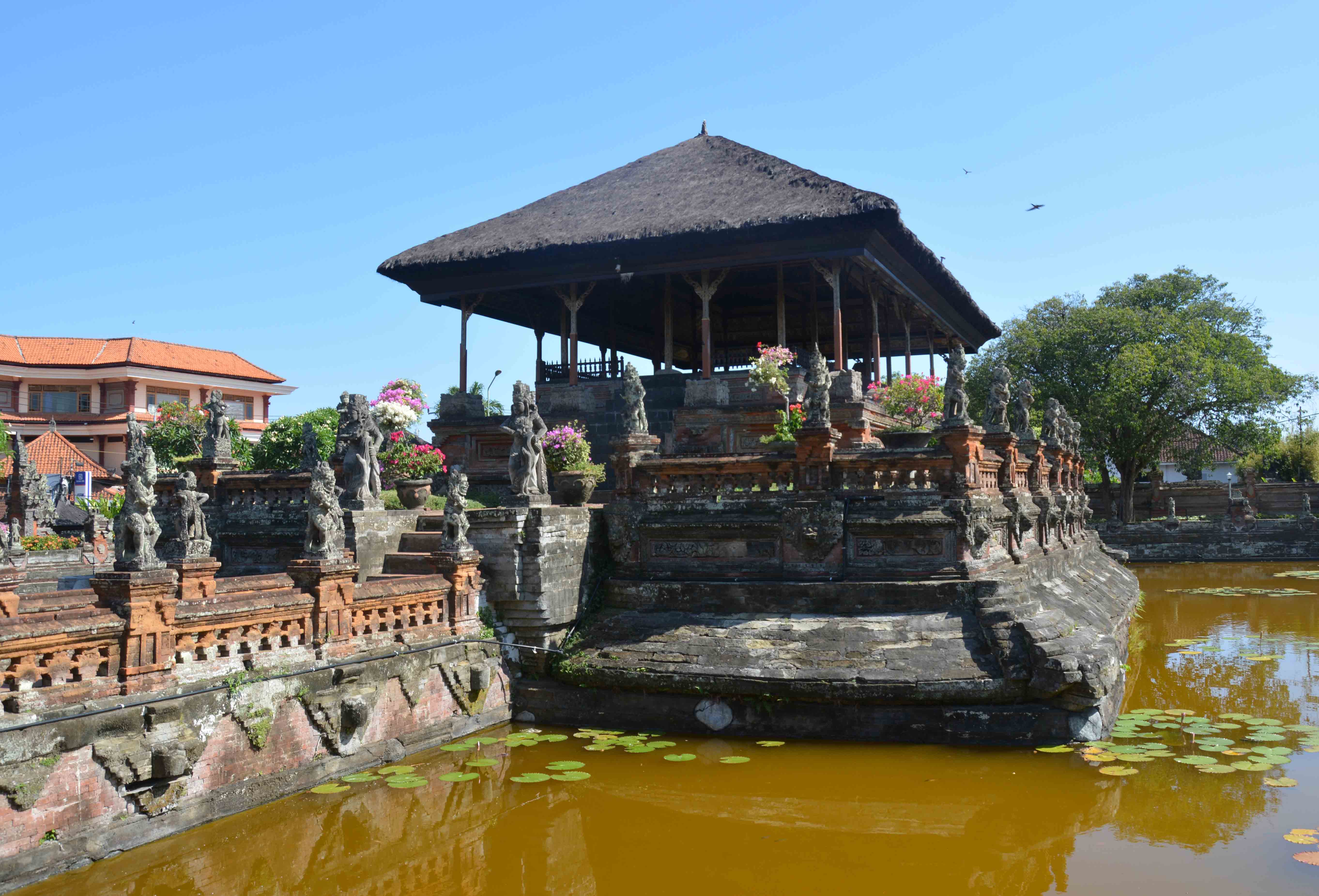 We steken de straat over en bezoeken twee overdekte ruimtes gebouwd in de traditionele Balinese architectuur. Tijdens het Koninkrijk van Klungkung dienden deze twee ruimtes als ontmoetingsplaats van de vazallen die er onderdeel van uitmaakten. Ook werd er recht gewezen voor degenen die zich niet aan de wet hadden gehouden. Wat straffen betreft behoefden de aangeklaagden alleen maar naar de onderkant van het plafond van de vertrekken te kijken. Op niet mis te verstane wijze staan er afbeeldingen van mensen van wie het hoofd wordt afgehakt, boven een vuur worden geroosterd of in een ijzeren pot worden ‘gaar’ gekookt.