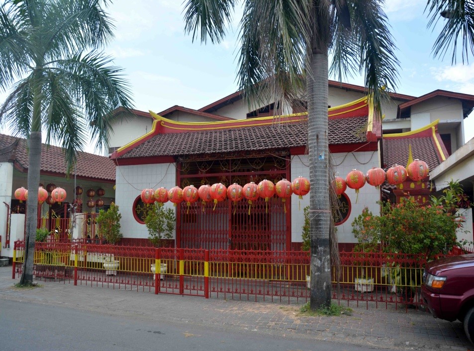 Veel Chinezen besloten uit veiligheidsredenen Ampenan te verlaten. Rijdende door de hoofdstraat van de wijk zien we dat veel winkels dicht zijn. Ook bij de roodkleurige Chinese Klenteng (Tempel) is het stil.