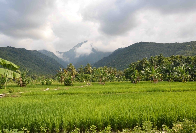 Als we in de buurt van Labuan Pandan komen krijgen we regelmatig een prachtig uitzicht op de Rinjani Vulkaan met zijn groene beboste hellingen. De lager geleden gebieden zijn echter niet zo vruchtbaar. Dat komt vooral omdat er in dit gebied minder regen valt dan in West Lombok. De bevolking is hier duidelijk minder welvarend. Dat is ook de reden waarom veel jonge vrouwen naar het Midden Oosten gaan om extra geld te verdienen.