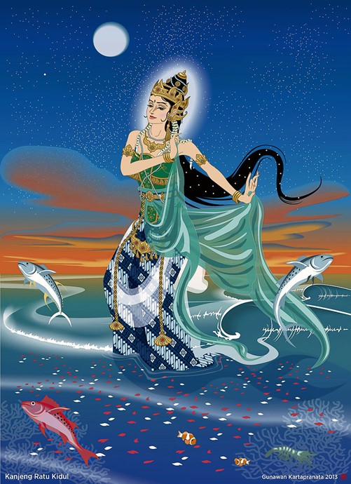 De goden hadden haar moeilijke levenspad gevolgd en werden vervuld van diep medelijden. Daarom veranderden zij Dewi Kadita in de machtige Ratu Loro Kidul, die nog steeds woont in haar prachtige onderzeese paleis.