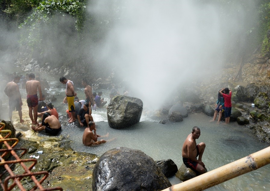 Helaas is van het laatste weinig meer over. De lokale overheid heeft van de aanleg van faciliteiten een rommeltje gemaakt. De plaatsen waar je een bad kan nemen in het hete bronwater zijn niet duidelijk aangegeven en als we daar aankomen, zien ze er niet aantrekkelijk en comfortabel uit. Het zijn voornamelijk mannen en jonge kinderen die er gebruik van maken.
