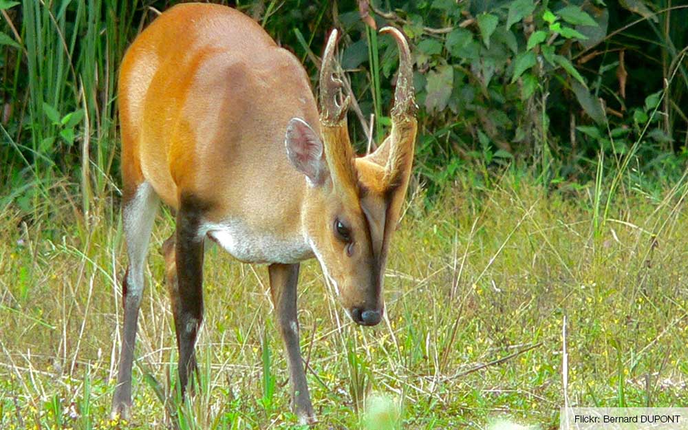 Deze hertachtige komt voor op Sumatra, Java en Sulawesi. Het mannetje heeft korte horens, die 3 tot 8 centimeter lang zijn. Bij de vrouwtjes zitten op de plek van de horens slecht kleine knobbels.