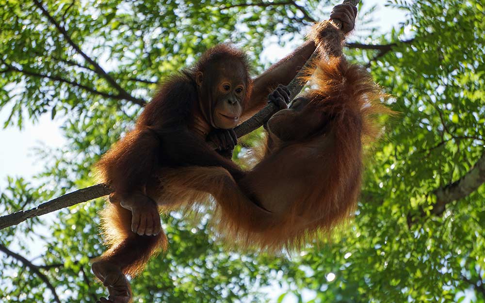 Hoog in de bomen van de dichtbegroeide jungle van Kalimantan en Sumatra spot je met veel geluk de orang-oetan. Door haar roodbruine vacht en mensachtige verschijning is het ontmoeten van deze aapsoort een indrukwekkende belevenis.
