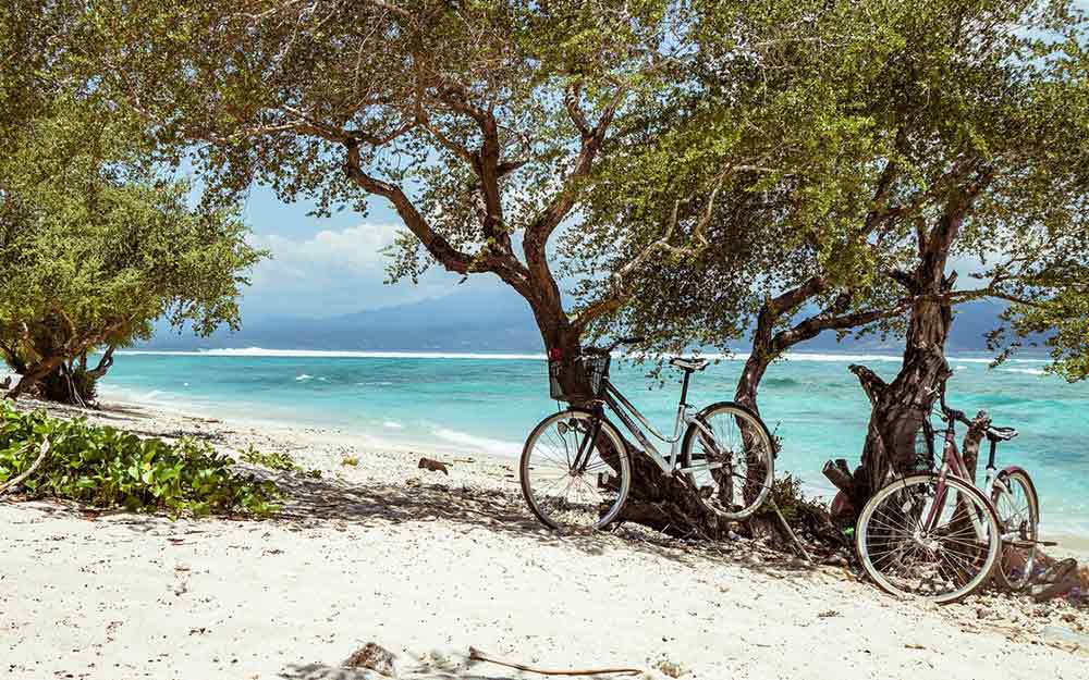 Op de Gili-eilanden is er geen gemotoriseerd vervoer. Daarom is de vertrouwde fiets het ideale vervoermiddel om de eilanden mee te verkennen. Voor een klein bedrag, soms zelfs met korting of helemaal gratis via je accommodatie, huur je een fiets en trap je in ongeveer een uur Gili Trawangan rond. Gili betekent niet voor niets ‘klein eiland’ in de lokale Sasak-taal.