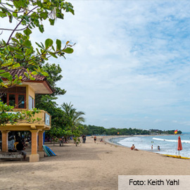Tussen de palmbomen door staan her en der tientallen surfplanken klaar om verhuurd te worden. Voor nog geen prikkie loop je met een plank onder je arm te water. En wie zijn best doet, wordt aan het einde van de dag beloond met een prachtige zonsondergang.